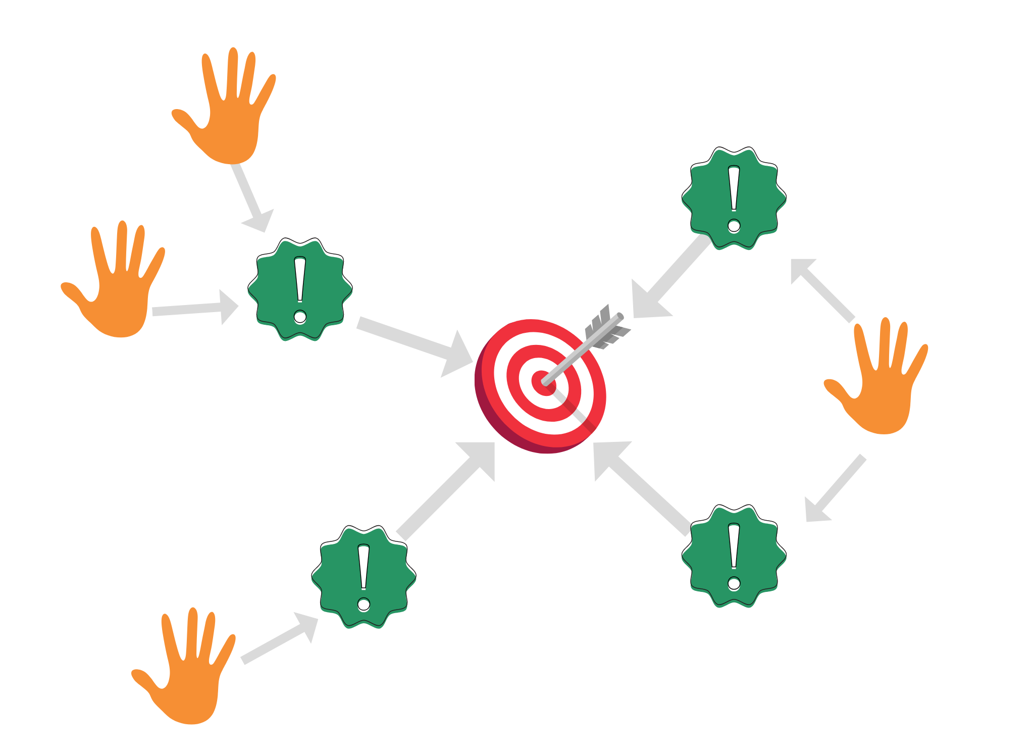 Collaborate with stakeholders to identify a business goal. When defining a business goal, ask, โwhat change do we want to create?โ This should be a specific and measurable goal. That way you can see if the training made any change in this area. The goal is the target in the center of your action map.