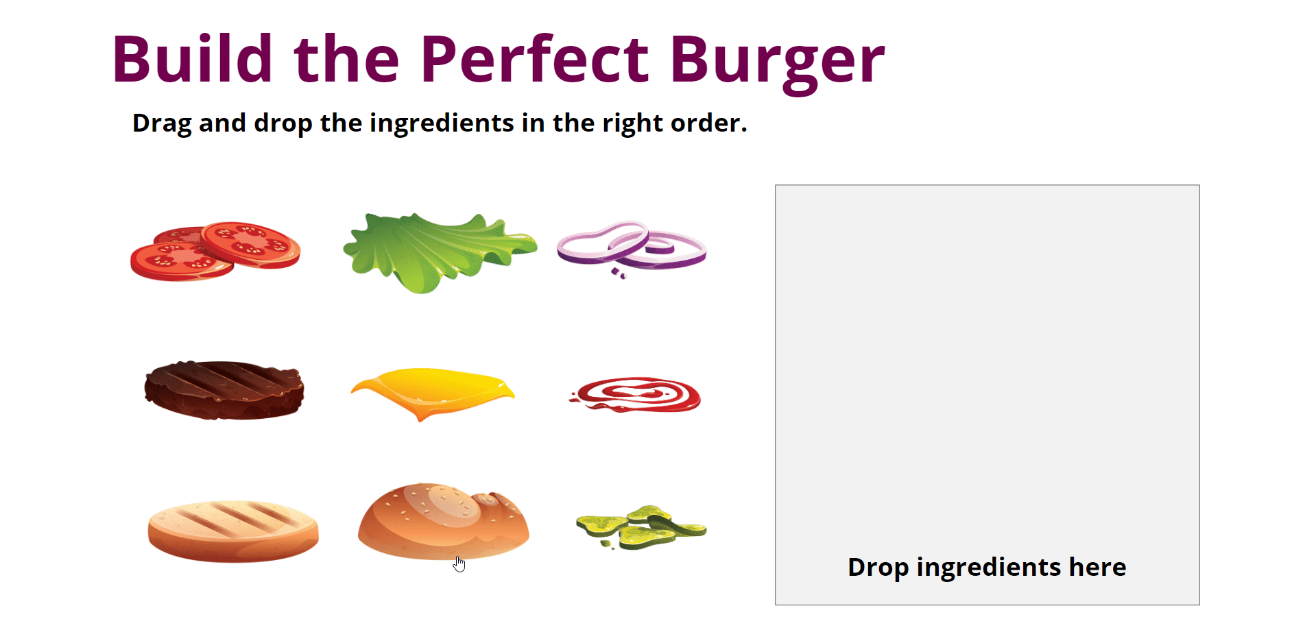 Each ingredient must be placed in the right order. If something’s missing, the learner receives targeted feedback before they try again.