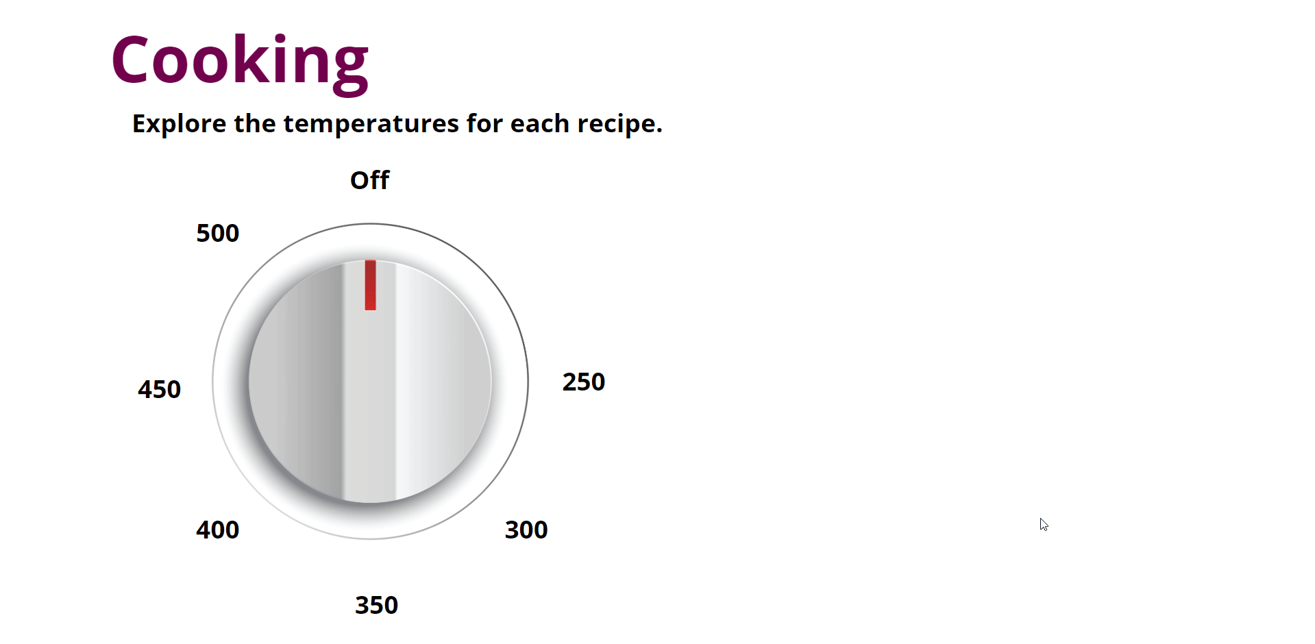 The interaction mimics real-world appliance use and helps visualize time and temperature relationships.
